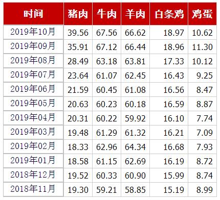 豬肉、牛肉、羊肉、白條雞、雞蛋均價(jià)(元/公斤) 來(lái)源:農(nóng)業(yè)農(nóng)村部官網(wǎng)截圖