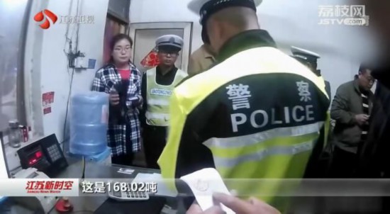 江蘇省泰州市交通警察支隊高港大隊副大隊長方秋明:“裝了多少?”貨車駕駛員吳某:“沒過磅,裝的毛紗。”方秋明:“貨單有沒有?”貨車駕駛員吳某:“沒有。”方秋明:“沒有?馬上請你跟我們過下磅去。”