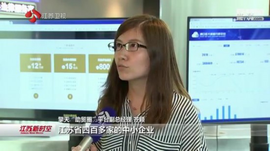 擎天"助貿圈"平臺副總經理齊穎:目前咱們這個平臺已經服務了江蘇省四百多家的中小企業(yè),幫助它在銀行獲得了各種類型的信用貸款,總的授信規(guī)模應該有超過15億。