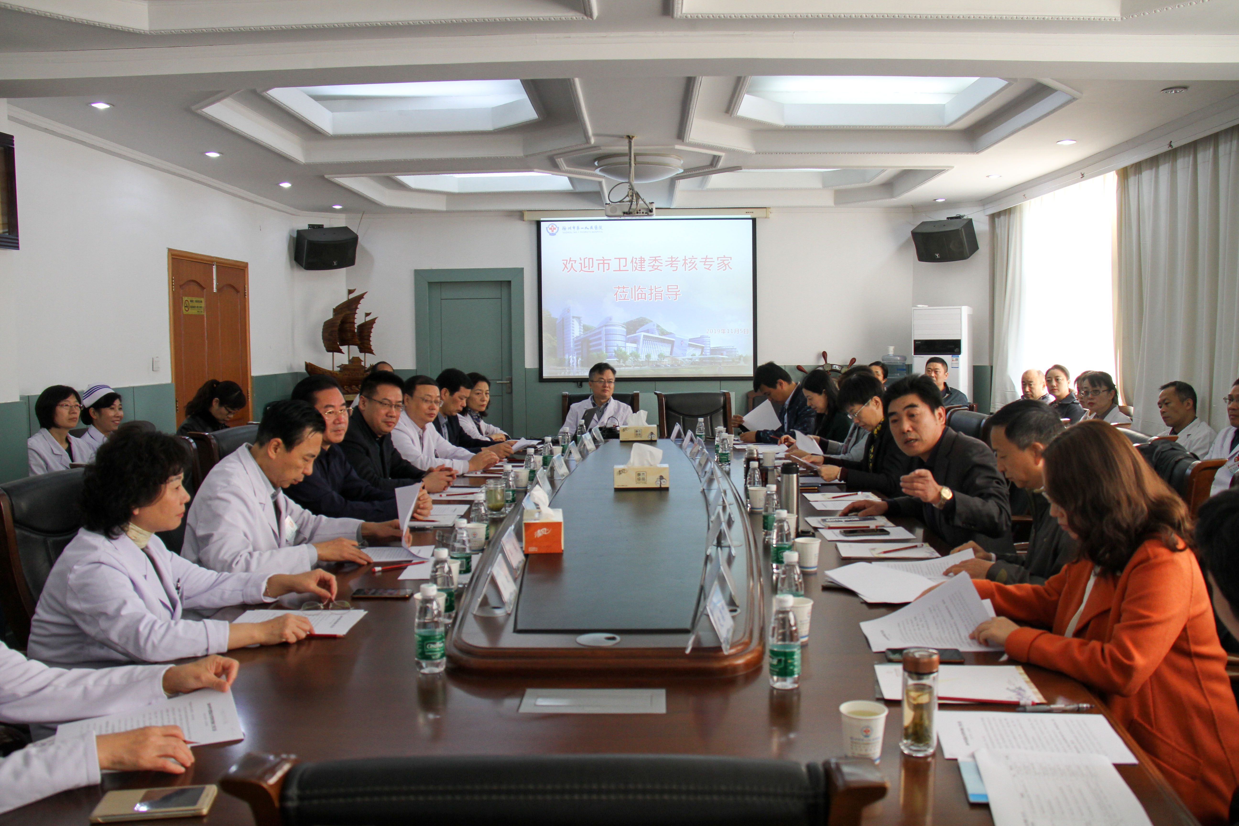黃淮網(wǎng) 11月5日上午,徐州市衛(wèi)健委檢查組一行9人蒞臨徐州市第一人民醫(yī)院對2019年度醫(yī)療質(zhì)量安全工作進(jìn)行檢查指導(dǎo)。徐州市一院院長杜鐘祥、黨委書記陸仁平,副院長甄宗禮、趙亮、紀(jì)委書記畢榮、副院長金風(fēng)等院領(lǐng)導(dǎo)及相關(guān)職能部門負(fù)責(zé)人迎檢。應(yīng)檢查組要求,檢查前省略院方匯報(bào)環(huán)節(jié),檢查組和院方僅用5分鐘左右時(shí)間完成了檢查前的歡迎與介紹,迅速投入分組檢查中。