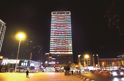 在中山南路上,另外兩座地標(biāo)建筑物成功大廈和貴邦財富樓體也于25日19:49準(zhǔn)時點亮“壯麗70年 幸福新時代 2019中國最具幸福感城市徐州”的宣傳字樣。由于兩棟建筑物距離較近,同時滾動播放顯得熠熠生輝、相得益彰、頗為壯觀。