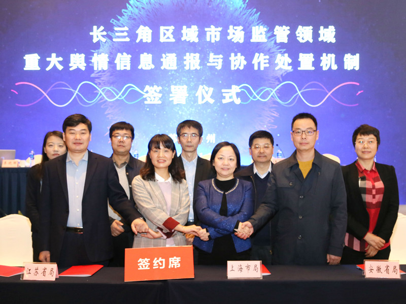滬蘇浙皖市場監(jiān)管局共同簽署長三角區(qū)域市場監(jiān)管領(lǐng)域重大輿情信息通報(bào)與協(xié)作處置協(xié)議