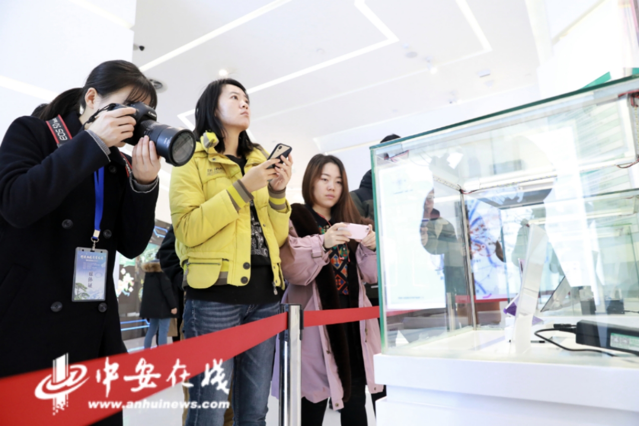 央媒記者在安徽創(chuàng)新館內(nèi)采訪拍照