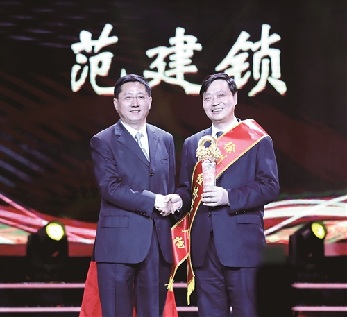 頒獎(jiǎng)典禮上,市委常委、常務(wù)副市長王劍鋒宣讀表彰決定,徐工集團(tuán)工程機(jī)械股份有限公司總裁陸川代表企業(yè)家發(fā)言。陸川、安繼文、范建鎖、馮素蓮、夏衛(wèi)華、李宏、傅志偉、李敏、李旭昇、丁陳建、藍(lán)楓高、顏臻、孫德榮以及優(yōu)秀民營企業(yè)家獲獎(jiǎng)?wù)呦群笊吓_(tái)領(lǐng)獎(jiǎng)。