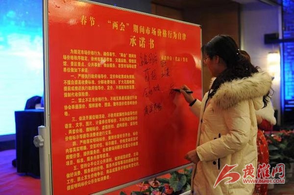 徐州金鷹商場(chǎng)薛梅副總經(jīng)理代表開(kāi)發(fā)企業(yè)發(fā)出價(jià)格承諾。市農(nóng)貿(mào)市場(chǎng)協(xié)會(huì)會(huì)長(zhǎng),徐州市旅游協(xié)會(huì)會(huì)長(zhǎng)、開(kāi)元名都大酒店總經(jīng)理分別進(jìn)行了遵守價(jià)格法律法規(guī)、加強(qiáng)企業(yè)價(jià)格自律、服務(wù)市場(chǎng)社會(huì)的承諾發(fā)言,到會(huì)代表簽訂了價(jià)格自律承諾書(shū)。
