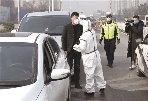 1月30日中午,記者一行驅(qū)車來(lái)到火花卡口附近,出入城的車輛還是相當(dāng)密集的。據(jù)介紹,這里連接外省市要道,是徐州的西大門,過(guò)往車輛多,人流量大,為了防控傳染源擴(kuò)散傳播,公安、交通、路政、醫(yī)護(hù)等工作人員在這里設(shè)置檢查帶,對(duì)過(guò)往車輛進(jìn)行檢查,對(duì)體溫異常者進(jìn)行處置。