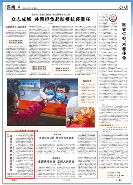 人民日報:江蘇網(wǎng)格員志愿者嚴(yán)防控密織網(wǎng)