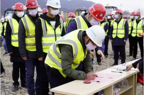 36名青年突擊隊(duì)代表共同宣誓:在黨的領(lǐng)導(dǎo)下,團(tuán)結(jié)攻堅(jiān),眾志成城,誓保徐州市傳染病醫(yī)院應(yīng)急病房建設(shè)工程建設(shè)任務(wù)圓滿完成,凝聚青春力量,踐行防疫使命,追求卓越,勇敢超越。“我們決心以高度的使命感、強(qiáng)烈的榮譽(yù)感,責(zé)無(wú)旁貸、團(tuán)結(jié)一致做好徐州市傳染病醫(yī)院應(yīng)急病房建設(shè)工程工作……”9名黨員、36名青年代表,在決心書(shū)上簽字,誓要打好“淮海戰(zhàn)疫”。