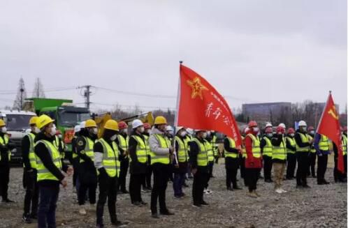 一面黨員先鋒隊(duì)旗,一面青年突擊隊(duì)旗,在徐州“淮海戰(zhàn)疫”的現(xiàn)場(chǎng)——徐州市傳染病醫(yī)院應(yīng)急病房建設(shè)工程項(xiàng)目上空高高飄揚(yáng)。2月6日下午,徐州市傳染病醫(yī)院應(yīng)急病房建設(shè)項(xiàng)目部在施工現(xiàn)場(chǎng)成立臨時(shí)黨支部,中國(guó)建設(shè)基礎(chǔ)設(shè)施有限公司副總經(jīng)理、中建華東投資有限公司黨委書(shū)記、董事長(zhǎng)宋旋為黨員先鋒隊(duì)授旗,中建一局副總經(jīng)理、中建市政黨委書(shū)記、董事長(zhǎng)袁立剛為青年突擊隊(duì)授旗。