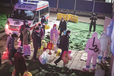 8日,在武漢雷神山醫(yī)院,患者步入病房。新華社發(fā)