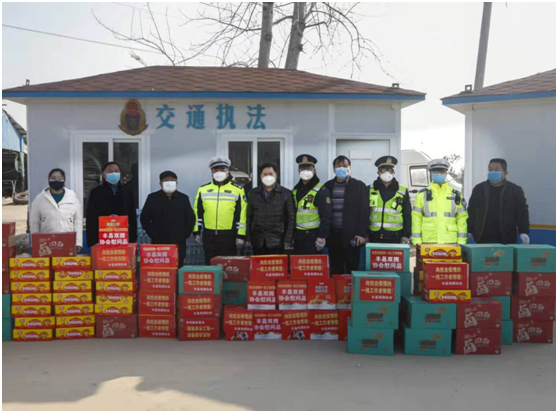 豐縣擁軍優(yōu)屬協(xié)會(huì)主席劉永清帶領(lǐng)協(xié)會(huì)的其他成員到豐縣抗擊新型冠狀病毒肺炎指揮部、豐縣華山卡口檢查站進(jìn)行走訪慰問,贈(zèng)送蜜橘、香蕉各10筐,方便面、火腿腸各50箱,以及核桃奶20箱等價(jià)值1萬(wàn)元的物資,為當(dāng)?shù)乜箵粢咔槌隽艘环萘Α?高聰)