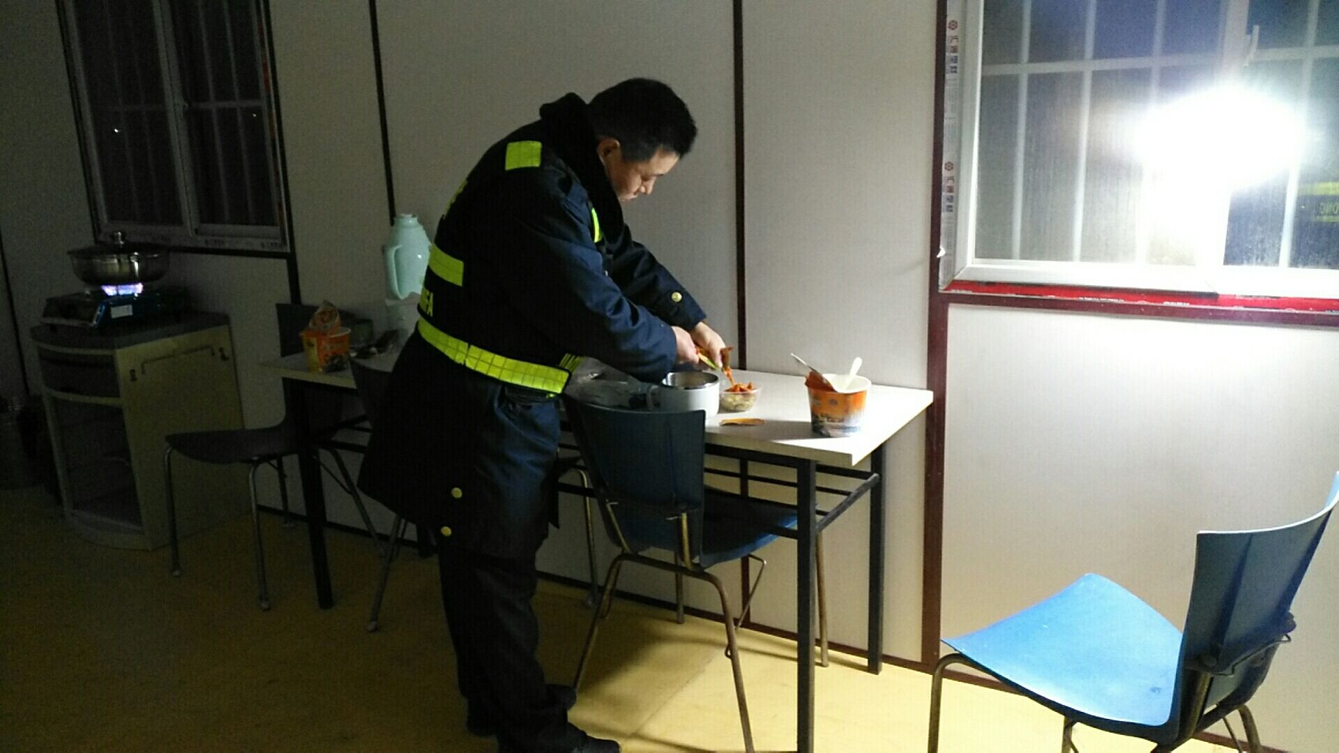 一線執(zhí)勤人員方便面充饑