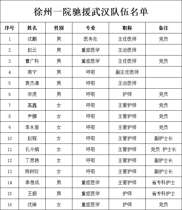 徐州一院接到任務(wù)后,立即發(fā)出了號(hào)召,并獲得了積極響應(yīng),隊(duì)伍在幾小時(shí)后組建完畢,徐州一院醫(yī)務(wù)處處長沈鵬任本次徐州市馳援武漢醫(yī)療隊(duì)領(lǐng)隊(duì)。
