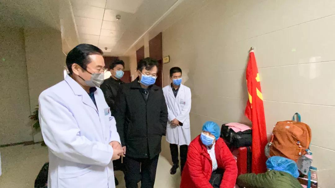 出行前,院領(lǐng)導(dǎo)班子為隊(duì)員們壯行。院長杜鐘祥對(duì)隊(duì)員們表示感謝并提出殷切希望,他說:這次支援任務(wù)是徐州市首次承擔(dān)武漢醫(yī)院單個(gè)病區(qū)的救治任務(wù),也是我院醫(yī)療救援隊(duì)伍規(guī)模最大的一次。承擔(dān)的不僅僅是徐州市的重任,也是國家的疫情大任。希望你們能夠做好個(gè)人防護(hù),順利完成醫(yī)療任務(wù),戰(zhàn)勝疫情,凱旋而歸。