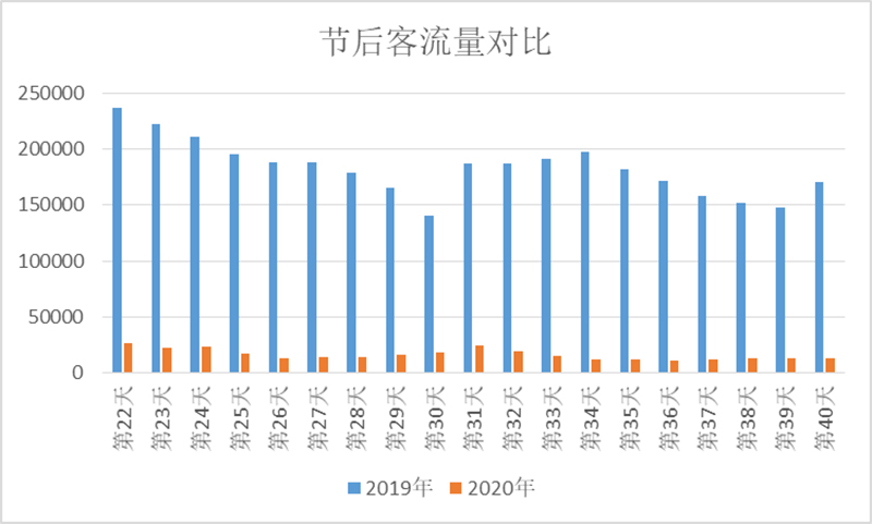對比2019年和2020年春運出行周期分析可以發(fā)現(xiàn),節(jié)前客流量同比去年,整體提升明顯。但中后期受新型肺炎疫情影響,客流量降至冰點。