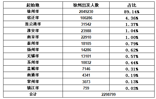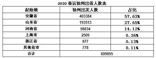 2020春運徐州出省人數(shù)表