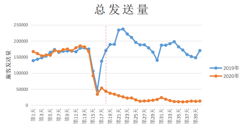 二是受疫情影響,出行需求大幅減少。今年春節(jié)是近8年最早的農(nóng)歷新年,春運開始首周與各大高校放假時間重疊,節(jié)前客流以返鄉(xiāng)到達客流為主,學(xué)生流、務(wù)工流、探親流仍是客流主體。根據(jù)疫情防控工作需要,自1月27日(除夕)開始,全市道路客運、城市客運停止運營,群眾均減少外出、居家隔離,出行需求大幅減少,鐵路、民航客運量下降明顯,使得節(jié)中、節(jié)后客流高峰歸零。
