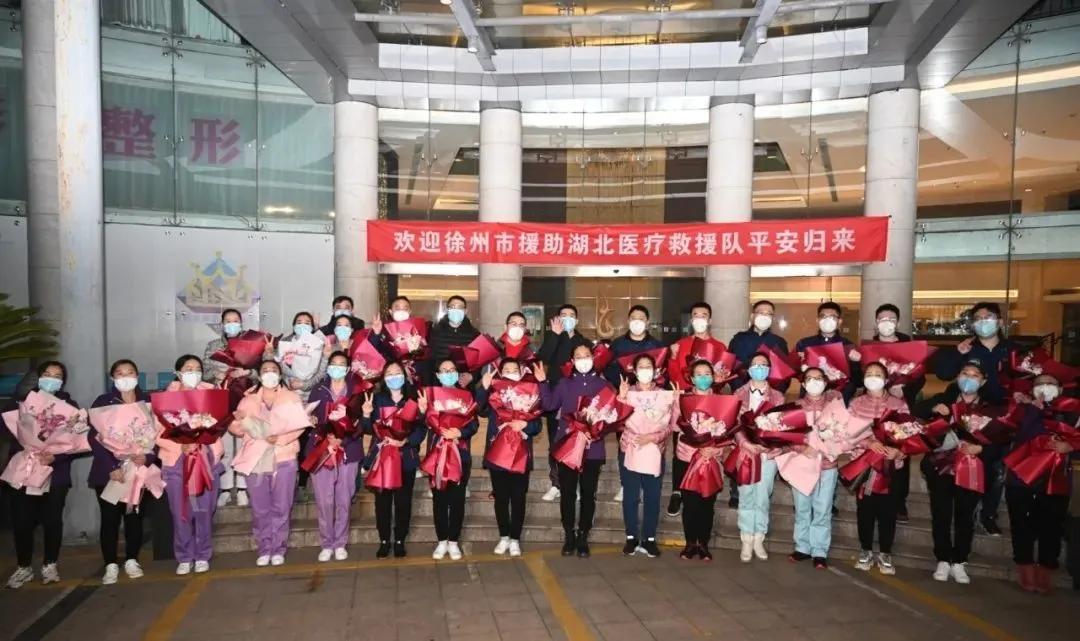 昨天,徐州59名白衣戰(zhàn)士結(jié)束了在武漢的醫(yī)療工作,分兩批返回徐州。昨夜10點(diǎn)30分左右,第一批30位醫(yī)護(hù)人員已平安到達(dá)。