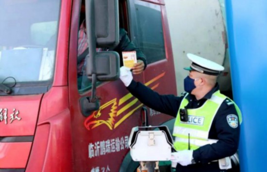 司元羽值的最后一個(gè)班,是和劉志強(qiáng)兩人一起上的。2月11日早上8點(diǎn),兩人一起來(lái)到疫情檢查卡口。隨著部分企業(yè)復(fù)工復(fù)產(chǎn),返程人流量增大,中午11點(diǎn)多后卡口來(lái)了很多超寬車,管制擺放的錐筒有些窄,這些車不好走,司元羽就彎著腰把1.2公里長(zhǎng)的錐筒一一挪開。下午3點(diǎn)多,車流量變小,車輛可以在三個(gè)車道自由通行,不再需要引導(dǎo)了。司元羽還是堅(jiān)持在前島將車輛引入同一車道。劉志強(qiáng)說(shuō),他這樣做,可以讓后方測(cè)體溫的醫(yī)療組的同志輪流休息休息。
