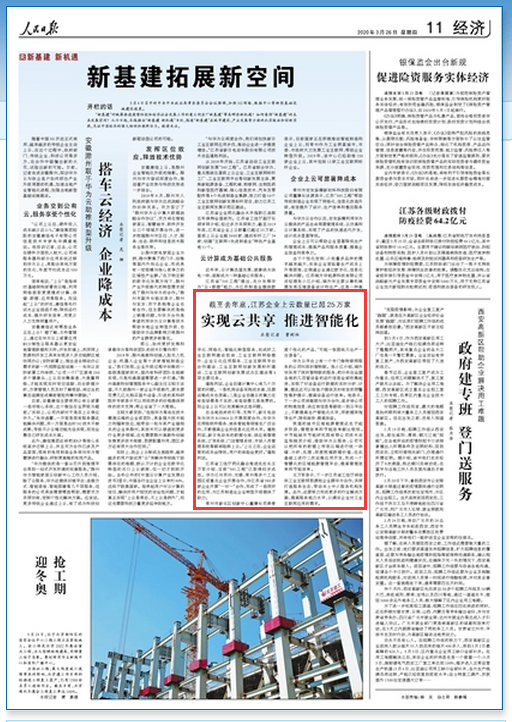 人民日?qǐng)?bào):江蘇企業(yè)上云數(shù)量已超25萬家 顯著降成本