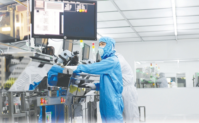 在合肥市肥東經(jīng)濟(jì)技術(shù)開發(fā)區(qū)光陣光電精密無塵車間內(nèi),技術(shù)人員在加緊生產(chǎn)此前因疫情而延遲的大量訂單。安徽日報(bào)記者 楊竹 攝
