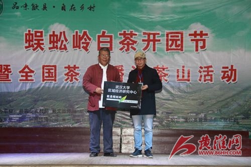 簽約之后是授牌儀式,有5家單位和公司在蜈蚣嶺建立基地,分別是:安徽省茶葉行業(yè)協(xié)會(huì)在歙縣蜈蚣嶺建立“中國徽茶研學(xué)旅基地”;蒲公英視界在歙縣蜈蚣嶺建立“公益茶園基地”;圣德書院在歙縣蜈蚣嶺建立“文旅產(chǎn)業(yè)研究基地”;武漢大學(xué)區(qū)域經(jīng)濟(jì)研究中心在歙縣蜈蚣嶺建立“文旅產(chǎn)業(yè)集群基地”;深圳市徽文化研究會(huì)皖深國際文創(chuàng)旅游產(chǎn)業(yè)聯(lián)盟在歙縣蜈蚣嶺建立“文創(chuàng)產(chǎn)業(yè)基地”。