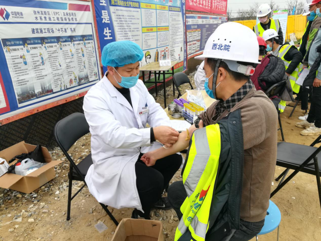 2020年3月31日,徐州市銅山區(qū)大彭鎮(zhèn)衛(wèi)生院應邀來到三堡臺尚,為中國電建西北院西北水利水電工程有限責任公司徐州高新區(qū)基礎設施建設水系貫通項目的工人進行健康體檢。