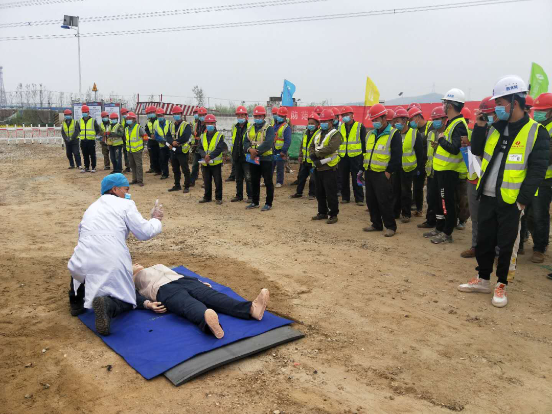 體檢開始前,徐州市銅山區(qū)大彭鎮(zhèn)衛(wèi)生院醫(yī)護人員首先對所有的工人進行了心肺復蘇急救知識的培訓以及新冠肺炎的防控知識的宣傳。醫(yī)護人員從引起心臟呼吸驟停的原因,判斷方法以及進行心肺復蘇的步驟進行詳細規(guī)范的講解,并進行示范。然后邀請4名工人進行體驗,糾正不規(guī)范動作。使工人們掌握了基本的急救方法,增強安全防護意識。