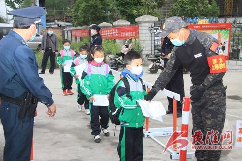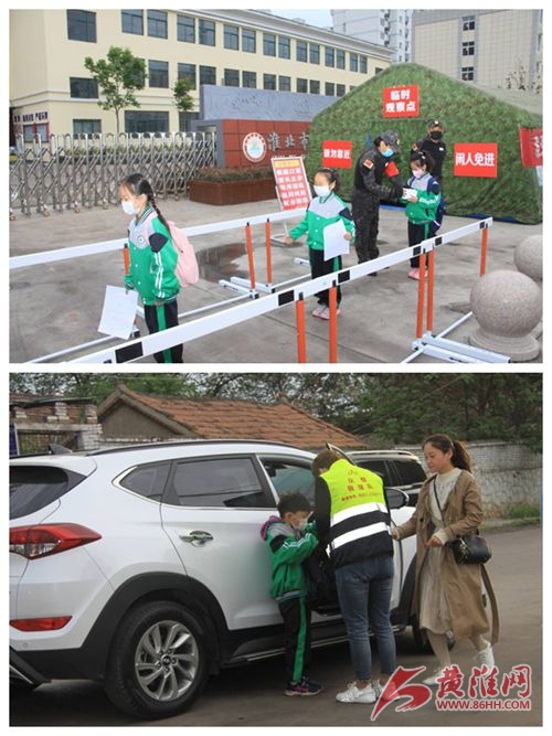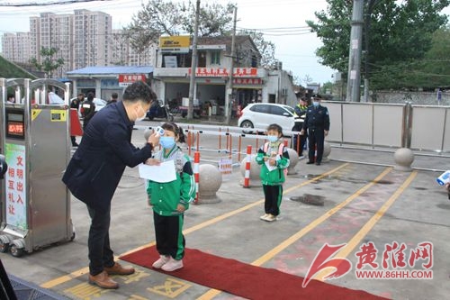 黃淮網(wǎng)(宋梅)4月27日淮北市中小學(xué)全部返校復(fù)課。早上7點(diǎn),淮北市曲陽小學(xué)迎來了第一位學(xué)生。一大早曲陽學(xué)校校長李軍攜全校老師、淮北眾幫救援隊(duì)在等待學(xué)生們的到來,并且一一進(jìn)行體溫測(cè)量。