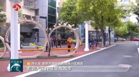 江蘇臺(tái)記者尹美又說(shuō):“經(jīng)過(guò)整治提升,如今的南京建鄴區(qū)天順苑小區(qū)不僅‘面子’煥然一新,‘里子’更是實(shí)實(shí)在在。大家可以看到,這個(gè)設(shè)施配套齊全的運(yùn)動(dòng)休閑廣場(chǎng)、整齊劃一的電梯、電動(dòng)車(chē)的充電裝置……隨處可見(jiàn)的人性化設(shè)計(jì),讓居民們的生活很是舒心。”