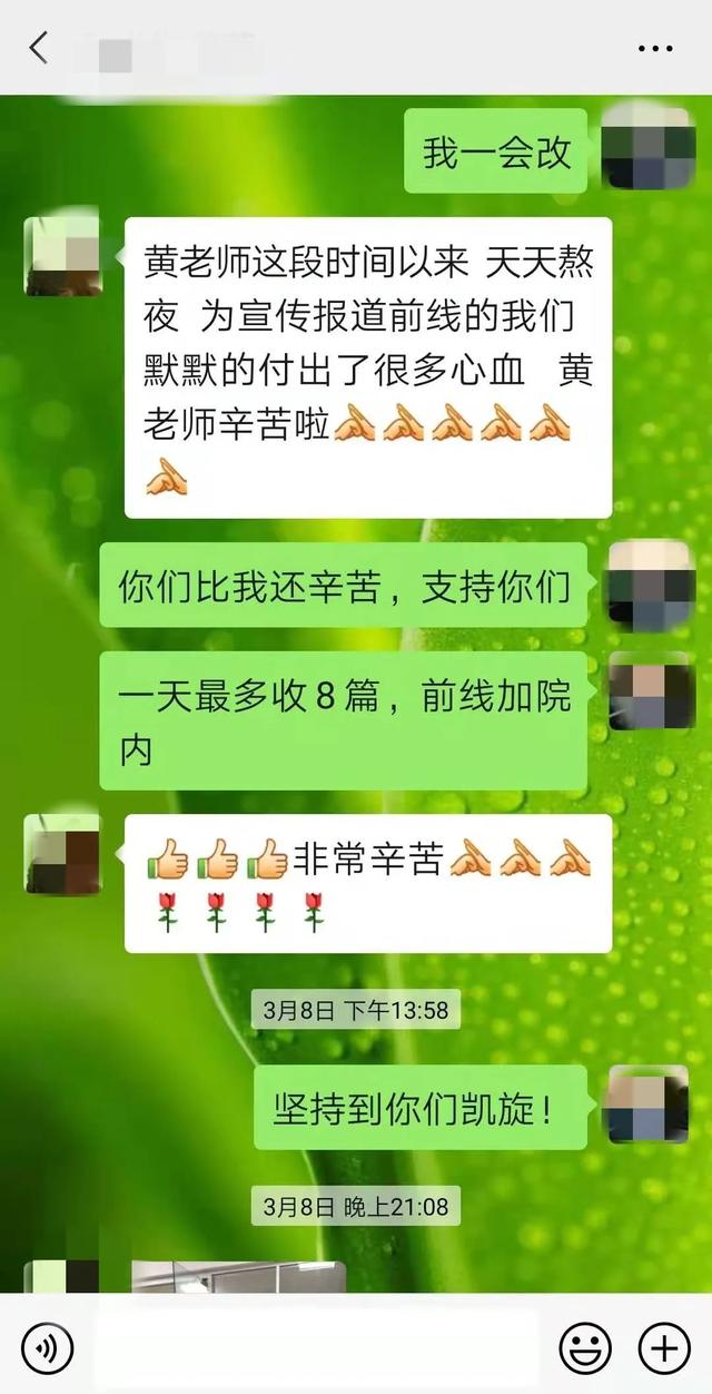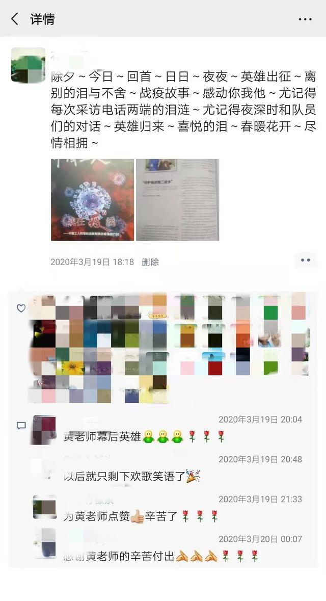從除夕之夜采寫臨床一線奉獻(xiàn)故事,到大年初二市一院第一批援鄂隊(duì)員出征,再到42名戰(zhàn)疫醫(yī)療隊(duì)員平安歸來(lái),黃玉梅以辦公室為家,常常到深夜還在默默采寫戰(zhàn)疫一線英雄事跡,甚至在疫情值守期間不慎摔傷致半月板損傷,仍一直堅(jiān)守崗位。她采寫了多篇戰(zhàn)疫英雄事跡,其中施海、于春雨、呂成偉的戰(zhàn)疫事跡被收錄入中國(guó)衛(wèi)生計(jì)生思想政治促進(jìn)會(huì)編寫的《武漢,我們來(lái)了》;房娜的戰(zhàn)疫事跡被收錄入《中國(guó)工人》期刊……她以筆為戈,以文抗疫,做抗疫事件的歷史記錄者,傳遞著抗疫正能量。