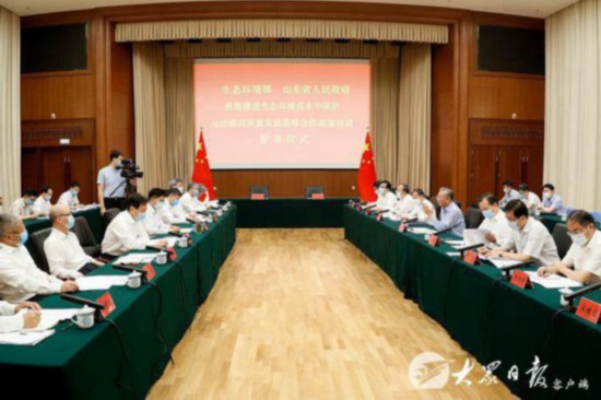 座談會(huì)后,生態(tài)環(huán)境部、山東省人民政府簽署了統(tǒng)籌推進(jìn)生態(tài)環(huán)境高水平保護(hù)與經(jīng)濟(jì)高質(zhì)量發(fā)展戰(zhàn)略合作框架協(xié)議。