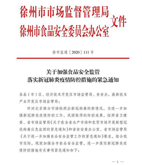 黃淮網(wǎng)訊(費(fèi)堅(jiān)真 徐仕評(píng)) 針對(duì)北京部分市場(chǎng)檢測(cè)出新冠病毒的新情況,6月14日,徐州市市場(chǎng)監(jiān)督管理局、徐州市食安委辦公室聯(lián)合下發(fā)緊急通知,要求全市各地進(jìn)一步指導(dǎo)食品經(jīng)營(yíng)者、集中交易市場(chǎng)嚴(yán)格落實(shí)食品安全自查等主體責(zé)任,做好員工健康檢查、原輔料進(jìn)貨查驗(yàn)登記、索證索票等關(guān)鍵環(huán)節(jié)控制;全面加大對(duì)肉品及海鮮等水產(chǎn)品監(jiān)管力度,嚴(yán)禁餐廳、酒店等使用來源不明的水產(chǎn)品及其食品原料,對(duì)經(jīng)營(yíng)和使用的三文魚一律下架封存,暫停銷售和使用。