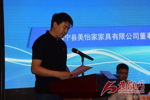 企業(yè)代表徐州美怡家家具有限公司董事長孫寒宣讀《落實全市電商家具質(zhì)量提升行動倡議書》。