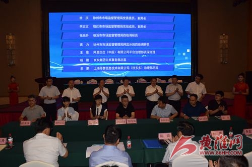 宿遷市市場監(jiān)管局副局長李志文、臨沂市市場監(jiān)管局四級調(diào)研員張東升、杭州市市場監(jiān)管局網(wǎng)監(jiān)分局四級調(diào)研員蔣力、徐州市市場監(jiān)管局副局長杜慶、阿里巴巴(中國)有限公司平臺治理部經(jīng)理王維、京東集團公共事務(wù)部總監(jiān)楊剛、上海尋夢信息技術(shù)有限公司(拼多多)治理部總監(jiān)吳鵬七家單位的代表簽訂《電商家具跨區(qū)域綜合協(xié)同監(jiān)管機制協(xié)議書》。