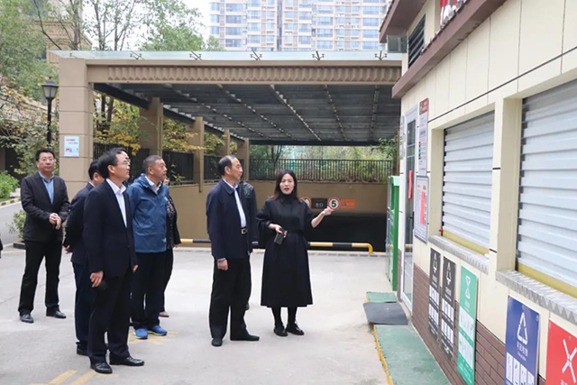 臧曉鵬一行來到金龍湖社區(qū)星湖灣小區(qū),察看小區(qū)垃圾房建設及使用情況,詳細了解居民分類投放現(xiàn)狀、垃圾桶收運、垃圾房衛(wèi)生處理等情況。