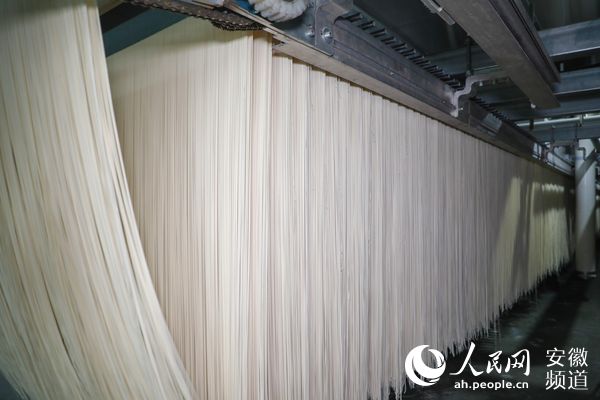 皖神面制品工廠內(nèi),正在進行面條制作。 陳若天攝