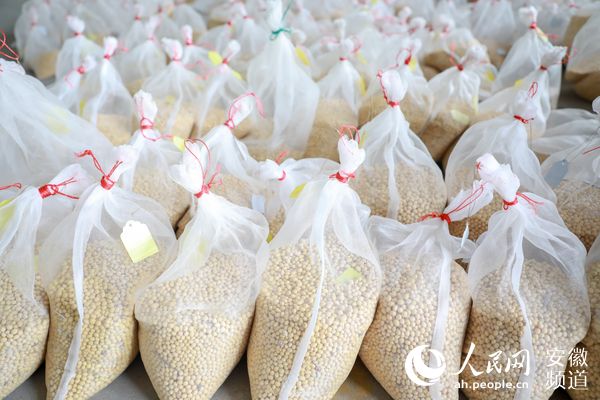 在淮河糧食產(chǎn)業(yè)化聯(lián)合體車間內(nèi),大豆育種專家正在對大豆進行選種試驗。陳若天攝