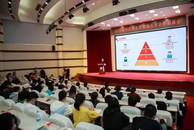 黃淮網(wǎng) 11月14日,由中共徐州市委組織部、徐州醫(yī)科大學主辦,徐州市人才工作領(lǐng)導(dǎo)小組辦公室、市人力資源和社會保障局、徐州醫(yī)科大學學生工作處承辦的“2020徐州醫(yī)科大學校地人才合作懇談會”在徐州醫(yī)科大學主校區(qū)召開。徐州市委常委、組織部部長季培東、徐州醫(yī)科大學黨委書記夏有兵在懇談會上講話,徐州市人社局、徐州市兒童醫(yī)院、恩華藥業(yè)集團領(lǐng)導(dǎo)分別就徐州市人才政策、企事業(yè)單位人才需求做匯報。