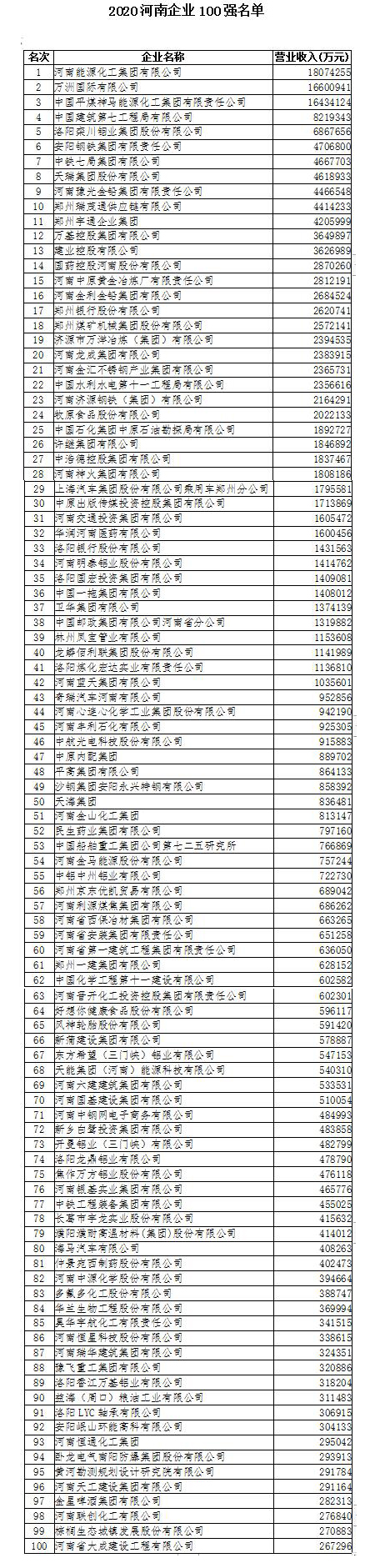 “2020河南企業(yè)100強(qiáng)”發(fā)布 民營(yíng)企業(yè)入圍59家(名單)