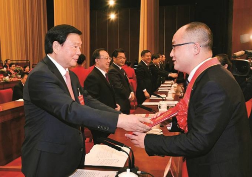上午10時(shí),大會(huì)開始?犊ぐ旱摹读x勇軍進(jìn)行曲》響起,全場(chǎng)起立高唱國(guó)歌。少先隊(duì)員首先向我省受到黨中央、國(guó)務(wù)院、中央軍委表彰的45名先進(jìn)個(gè)人和15個(gè)先進(jìn)集體代表獻(xiàn)花。