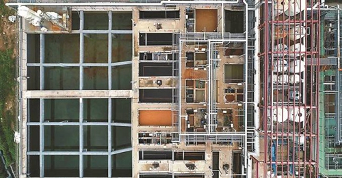 鎮(zhèn)江華科電鍍園區(qū)廢水集中處理二期“綠島”試點(diǎn)項(xiàng)目—廢水處理物化系統(tǒng)空中全景(受訪者供圖)