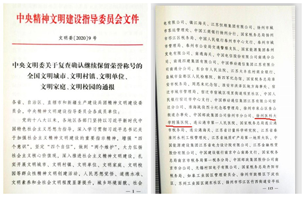 徐醫(yī)附院通過全國文明單位復(fù)評,蟬聯(lián)“全國文明單位”稱號