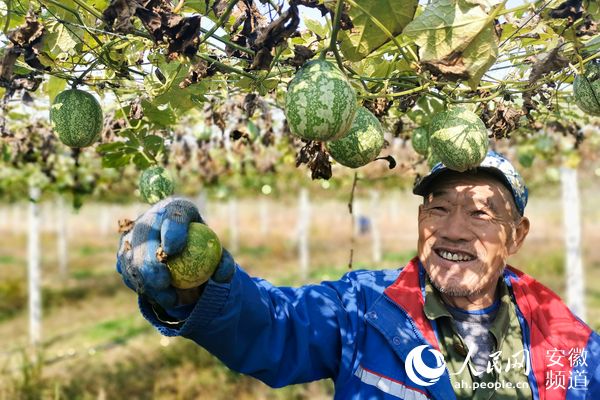 吊瓜豐收讓脫貧戶喜悅不已。人民網(wǎng)王銳攝