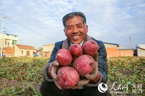 紅薯喜獲豐收,村民喜笑開顏。人民網(wǎng)王銳攝