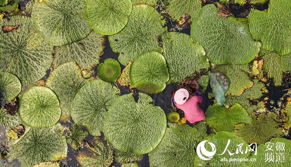 芡實(shí)種植戶忙采摘。人民網(wǎng)王銳攝