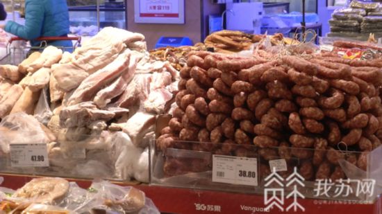 1月28日上午,記者在南京清涼門和丹鳳街的兩家大型超市看到,來自五湖四海的年貨已經(jīng)掛上了貨架,除了常見的品種外,今年該超市內(nèi)還特地補充了川味辣香腸、湖南嫩臘肉、北京熏雞等具有特色風味的外地年貨,不僅滿足了"新市民"的需求,也讓很多老南京人有了更多選擇。