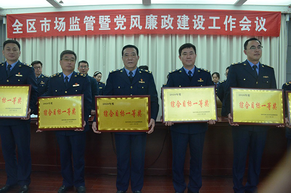 會(huì)上宣讀了銅山區(qū)市場(chǎng)監(jiān)管局在2020年獲得的省、市、區(qū)級(jí)各類(lèi)榮譽(yù)表彰,通報(bào)了全區(qū)市場(chǎng)監(jiān)管系統(tǒng)2020年度先進(jìn)單位和先進(jìn)工作者,并對(duì)先進(jìn)集體和先進(jìn)工作者代表進(jìn)行了頒獎(jiǎng)。