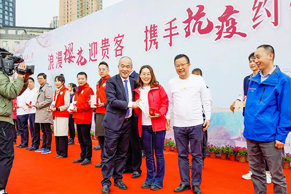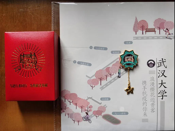 專場活動上,作為戰(zhàn)疫英雄代表,茅一萍從武大校長竇賢康院士手中接過感謝獎章,武漢人民感謝援鄂醫(yī)療隊在武漢危難之時傾力相助。武漢大學還為抗疫英雄送上了精美的紀念徽章。愛在彼此牽掛中,感恩在一生一世間,徽章將戰(zhàn)疫、武大、櫻花等元素巧妙融合禮品雖小,情義卻真。武大師生還為抗疫英雄組織了專場演出“櫻約而至,感恩有你”。