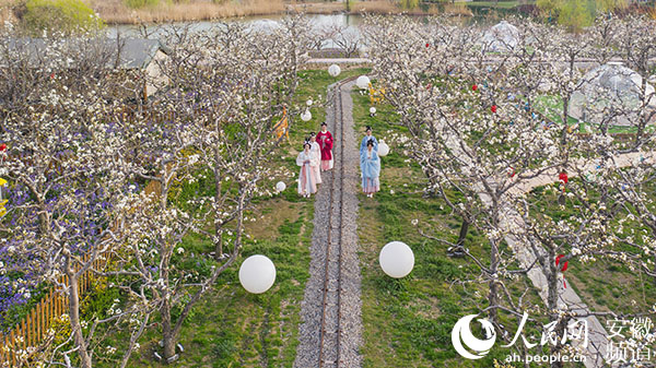 活動(dòng)現(xiàn)場(chǎng)周邊的梨園,簇簇梨花如枝頭堆雪,潔白無瑕。放眼望去,成片的梨花,正吸引眾多游客聞香前來,賞花游玩,感受田園樂趣。